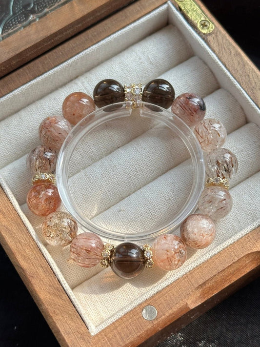 Schwarzer Super Seven und Rauchquarz Armband 12mm