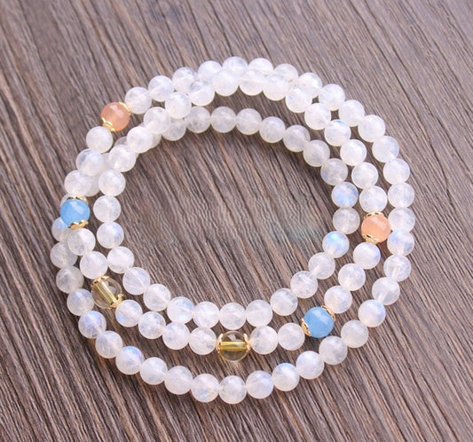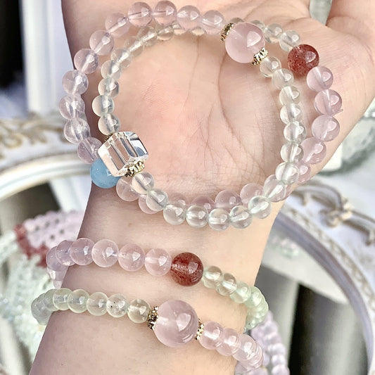 Heilstein Armband Prehnit Rosenquarz Aquamarin