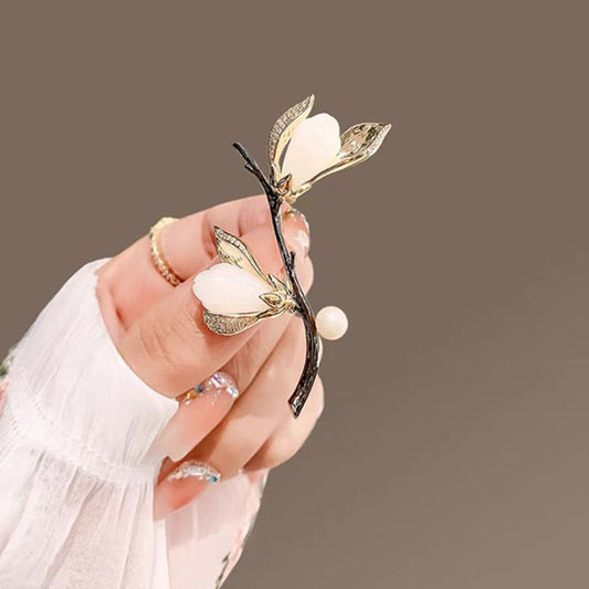 Magnolia Grace – Broche mit Emaille-Blüte Süßwasserperle