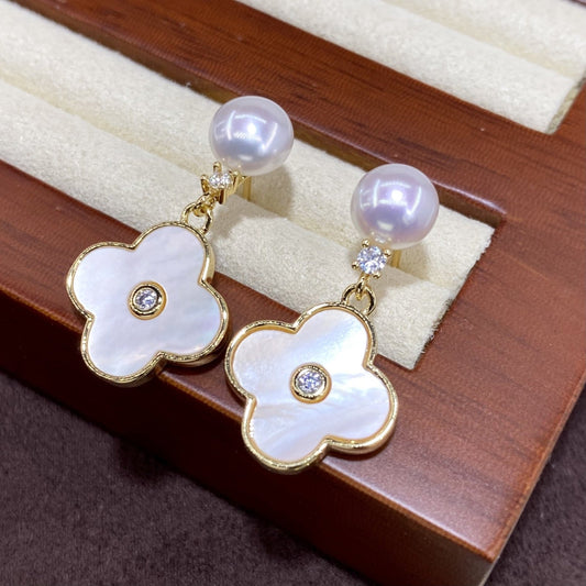 Vergoldet Perlmutt Vierblatt Perlen 925 Silber Ohrstecker