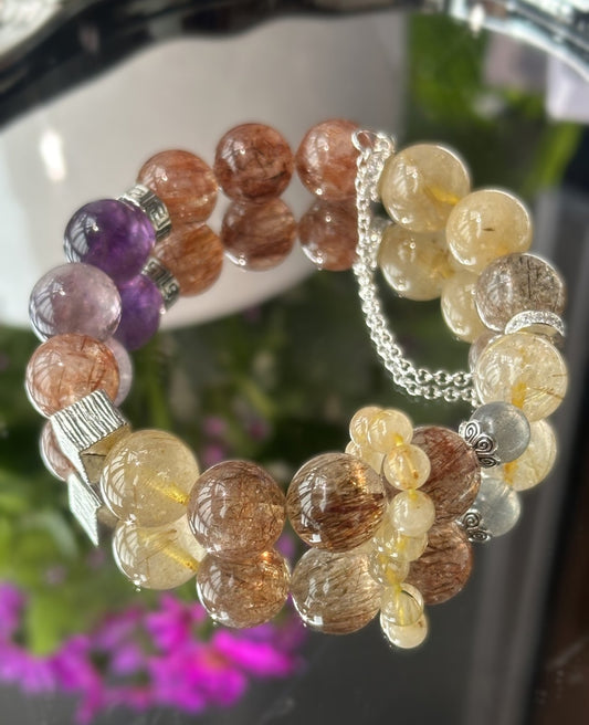 Lunar Veil Armband mit Phantomamethyst, Super Seven, Rutilquarz und Mondstein