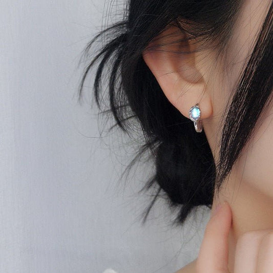 S925 Silber Ohrclips mit ovalem Mondstein