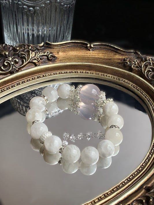 Snow Bloom Armband mit Rosenquarz und Schneeflocken Phantomquarz