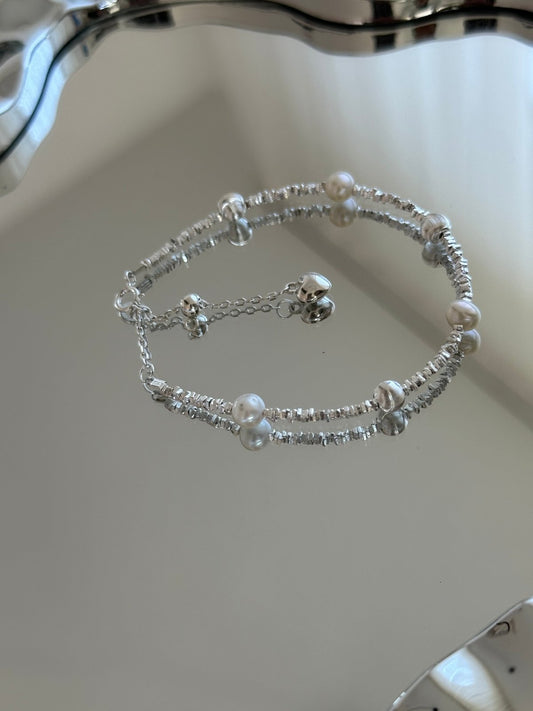 Perlentakt Armband 925 Silber mit Süßwasserperlen