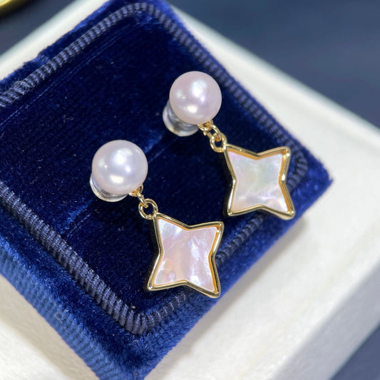 S925 Silber Perlmutt Stern Perlen Ohrstecker