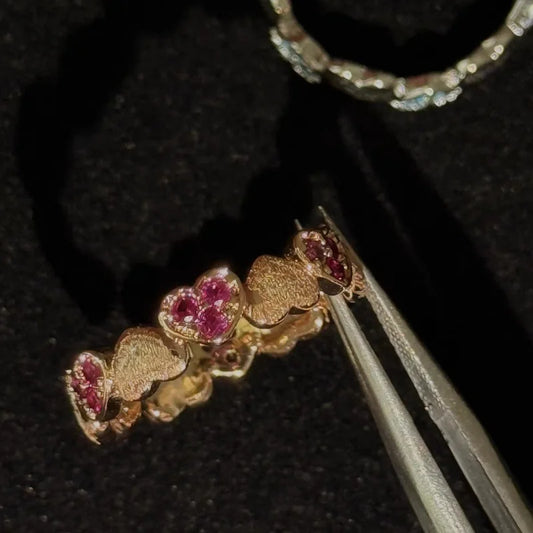 Breiter Vintage Bubble Ring mit rosa Zirkonia