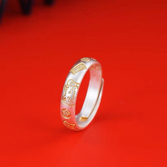 Lucky Cat Ring 999 Feinsilber Verstellbar Golddekor