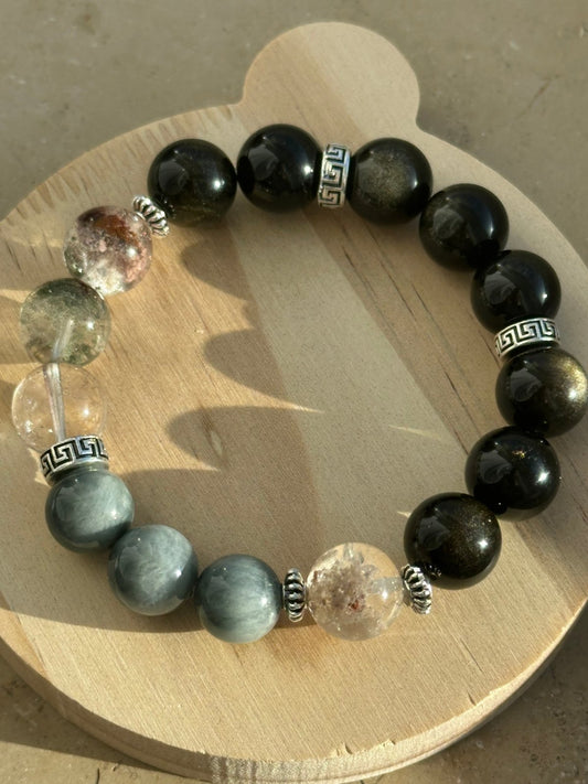 Shadow Realms Armband mit Goldobsidian und Phantomquarz