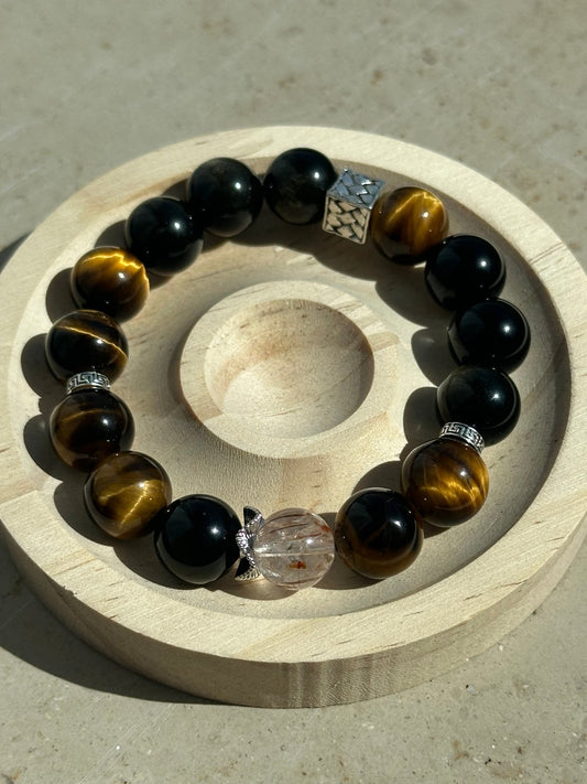 Kristal Armband mit Goldobsidian, Tigerauge, Black Super Seven