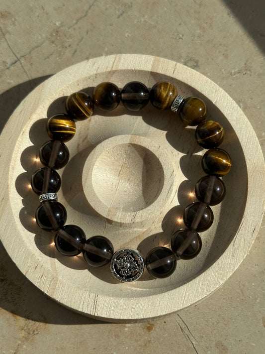Goldener Tigerauge Rauchquarz Armband