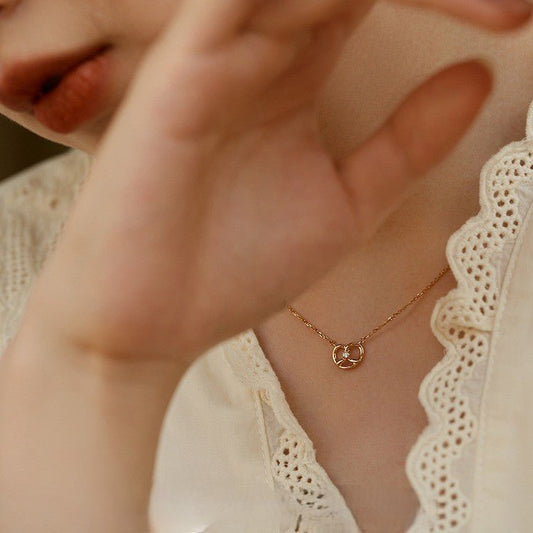 S925 Silber Herz Brezel Halskette 18K vergoldet