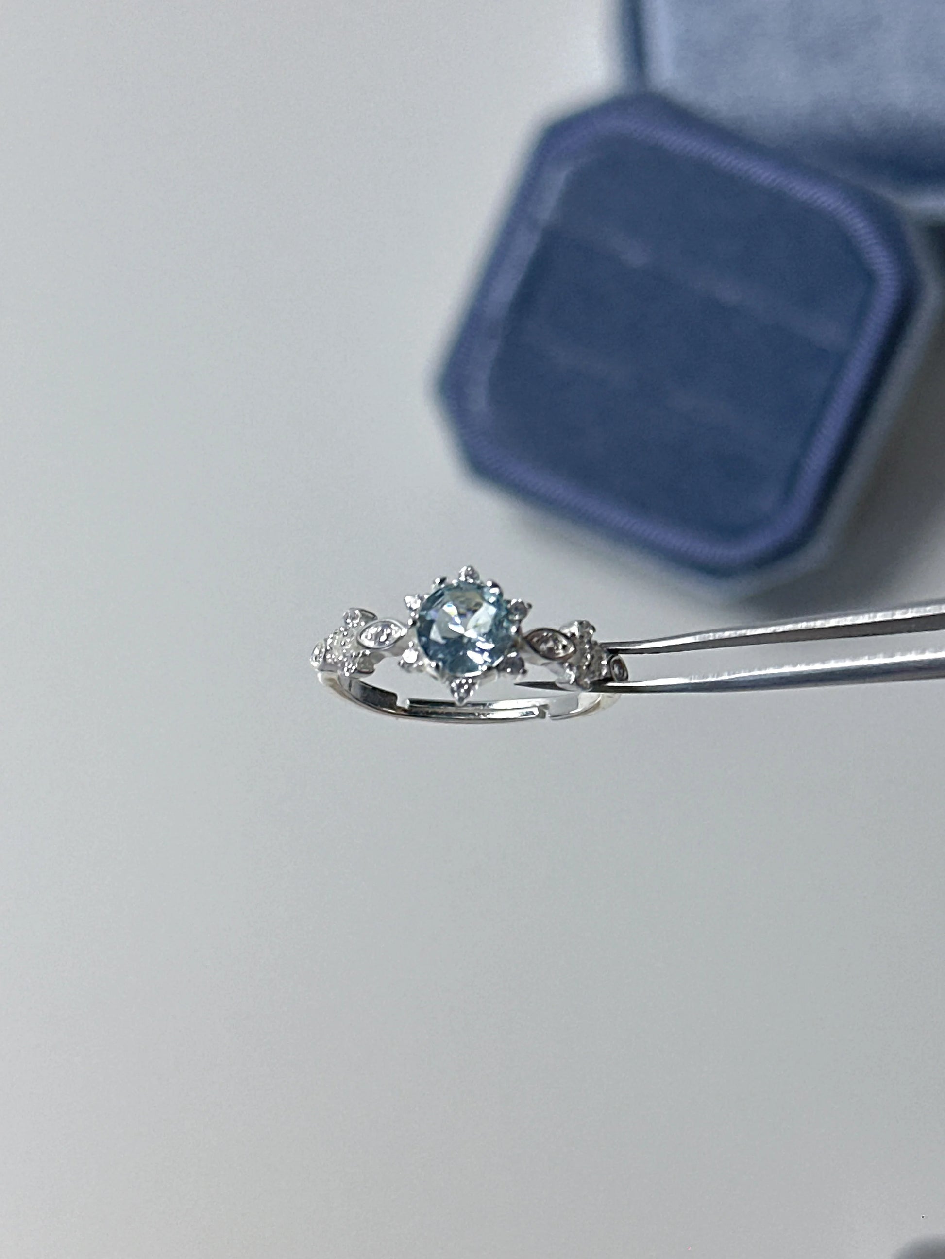 Design: Elegant vintage style with a radiant aquamarine blue stone